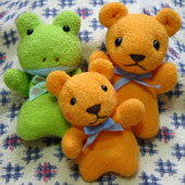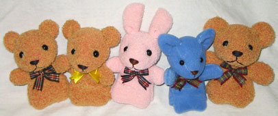 指にはめて、赤ちゃんや子供と遊ぶのに ちょうど良いと なかなか好評で、たろちゃん用の「3号・くま」以外は みんな里子に行ってしまいました・・・。