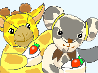← 早速、すっしーくんのブチの位置を研究して、描いてみました(^^;)。「これからもっとガンバりましょう」ですね(笑)。ハマーくんの模様の方は、いつもテキトーにキリンっぽく見えるように描いちゃってるの>ごめんね、ハマーくん。 -- 葵 2004-05-11 (火) 16:53:08