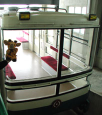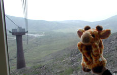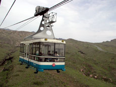 1958年、世界で初めて活火山に架けられた、 高低差108m、所要時間4分間で結ぶ、91人乗り大型ロープウェー。 |
