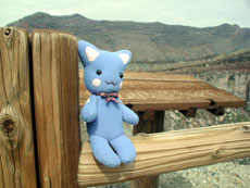 「ここまで来る途中は、緑がほとんどない不毛の地って感じだったのに、ここから見える山は緑がいっぱい。ちょっと歩いただけなのに、不思議だね。」 |
