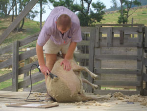 1.羊の追い込みショーのあとは、羊の毛刈り実演。 |