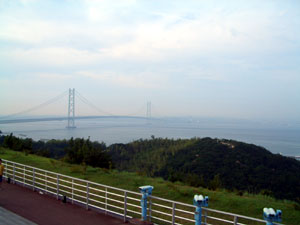 晩ご飯も食べて帰るつもりが、あまりの暑さにぐったり。 往き(徳島方面)より帰り(神戸方面)のパーキングエリアからの方が明石海峡大橋が近くに見える。 |