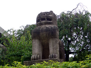 2.入口では、大きな狛犬さんがお出迎え。 |