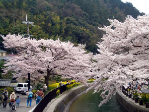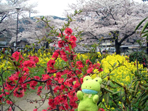 5.菜の花と桜の写真が撮れる安朱橋付近はカメラマンの人気スポット。