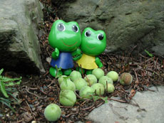 | 「梅の実ころころ♪」 「ぼくたちが取ったんじゃないんだよ。」 |