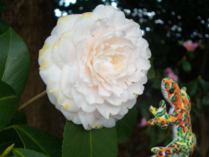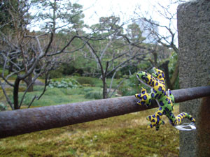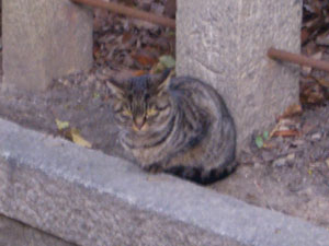 ・・・せっかく来たんだしと、お庭に入ってみると、いきなり猫ちゃん発見! 「あ〜あ、今日は人が少ないから、油断してしもた。」 |