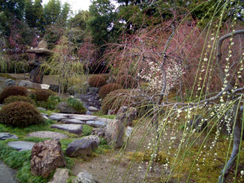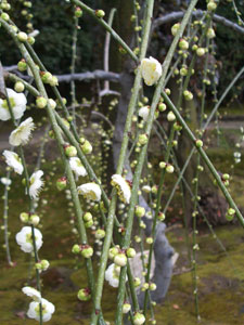 「境内参拝自由。でも、曲水の宴が催されることで有名な神苑(楽水苑)は有料。500円也。」 「まだ梅には早そうだなあ。」 |