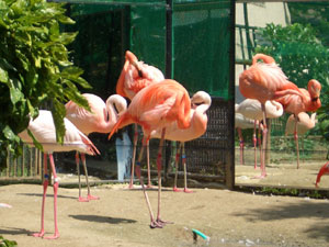 7.鏡にうつる自分の姿に見とれる(?) フラミンゴ。