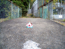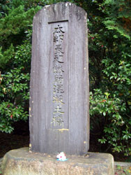 日本で最初に造られたコンクリートの橋という意味なんだよ。」 (石碑の下にいるんだけど、すっかりぼけぼけでわからないよね。) |