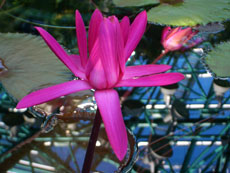 この温室では、一年を通じてスイレンの花が咲いているんだって。 |