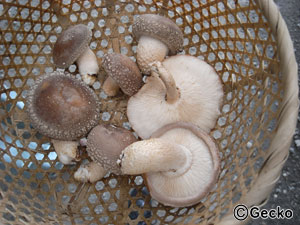 焼き椎茸用にカサが開いていないのと、煮物用にカサが開いたもの。