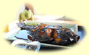 この魚は、海の中にある天然の生け簀から、さっき網で捕まえられたばかりなんだ。
