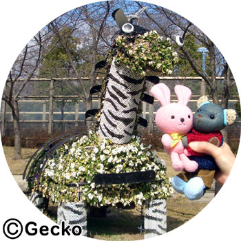 1. 大好きな 動物園の手前にある天王寺公園のシマウマさんの前で、早速、ツーショット。 |