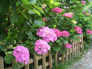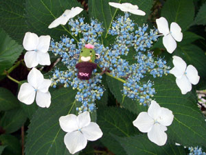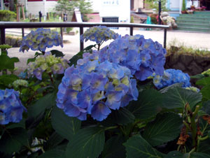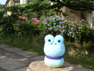 16.青いあじさいの花の向こうに、大きなぬいぐるみさんが! |
