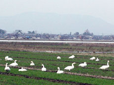 5.近くの田んぼには、 コハクチョウがいっぱい |