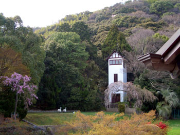 JR京都線「山崎駅」から徒歩約10分。高台にあるので、急な坂道を登っていく。 入館料700円。中は美術館になっている。 |