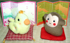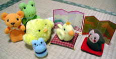 6. ヒヨコちゃんは、座布団と屏風付。 青いカエル君は、おじゃみ〜ずなんだって。」 |