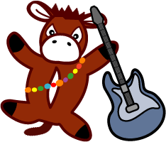 2002年6月、和歌山県・白浜からやってきたキリンのマペット。 画像をクリックすると、Shock Wave Flashの大きな画像になるよ(2002.12 Illustratorで作成)。 |