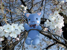 「くま・ぱあく」の凛さん作のぬいぐるみ。 平野神社にお花見に行ったときに撮影(2004.3)。 |