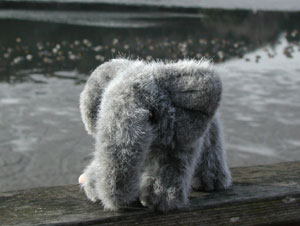 ぞうぞうは、いつ、どこからやって来たのかはっきりしないのだ。 ふわふわした毛のぬいぐるみは、アイコンにするのは難しい・・・鼻が長過ぎ?全然似ていないな。 京都府亀岡市・水鳥のみちにて撮影(2004.1)。後ろに写っているのは水鳥。小さ過ぎてわからないか。 |