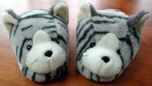 写真を撮った当時は、ベッドサイドでめがね掛けとして活躍していたが、今はタンスの上でのんびりと過ごす。 スリッパとしてのお仕事をしたことはない