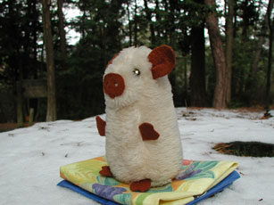 数年前に近くの生協にて発見。 目の疲れがひどい頃だったので、アイピローとして活躍してもらおうと連れ帰る。 体の大きさの割には重くて、体重200g。 来た時はアロマのいい香りがしていたけど、今はしない。 お仕事をしていたのも、最初の頃だけ。 |
